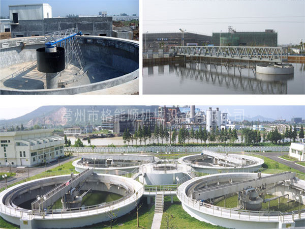 中心傳動刮吸泥機采用中心傳動,污水從進水管流入導流筒擴散后,均勻的向周邊呈輻射狀流出,呈懸浮狀的污泥經沉淀后沉積于池底,驅動裝置帶動中心豎架旋轉,并帶動刮臂及刮泥板轉動,刮泥板將污泥刮集后由吸泥管靠池內靜水壓抽吸至中心泥缸,再通過中心排泥管排出池外,水面上的浮渣通過旋轉撇渣裝置導入排渣斗內排出池外;而上清液則通過三角形出水堰板溢入出水槽內排出。我公司將會針對用戶不同工藝控制條件要求,做相應的配套調整設計,以確保泥漿沉降分離和洗滌效果,減少浪費,節約投資成本。